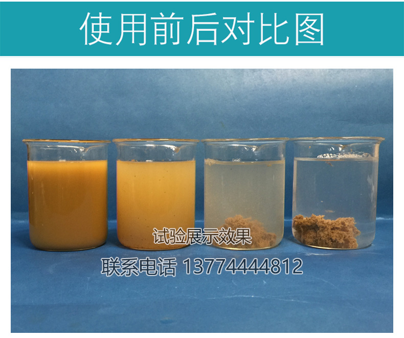 2、該破乳劑具有協同效果,在前期投加5~100ppm的PAC或PFAC、PFC,可使水質變清。